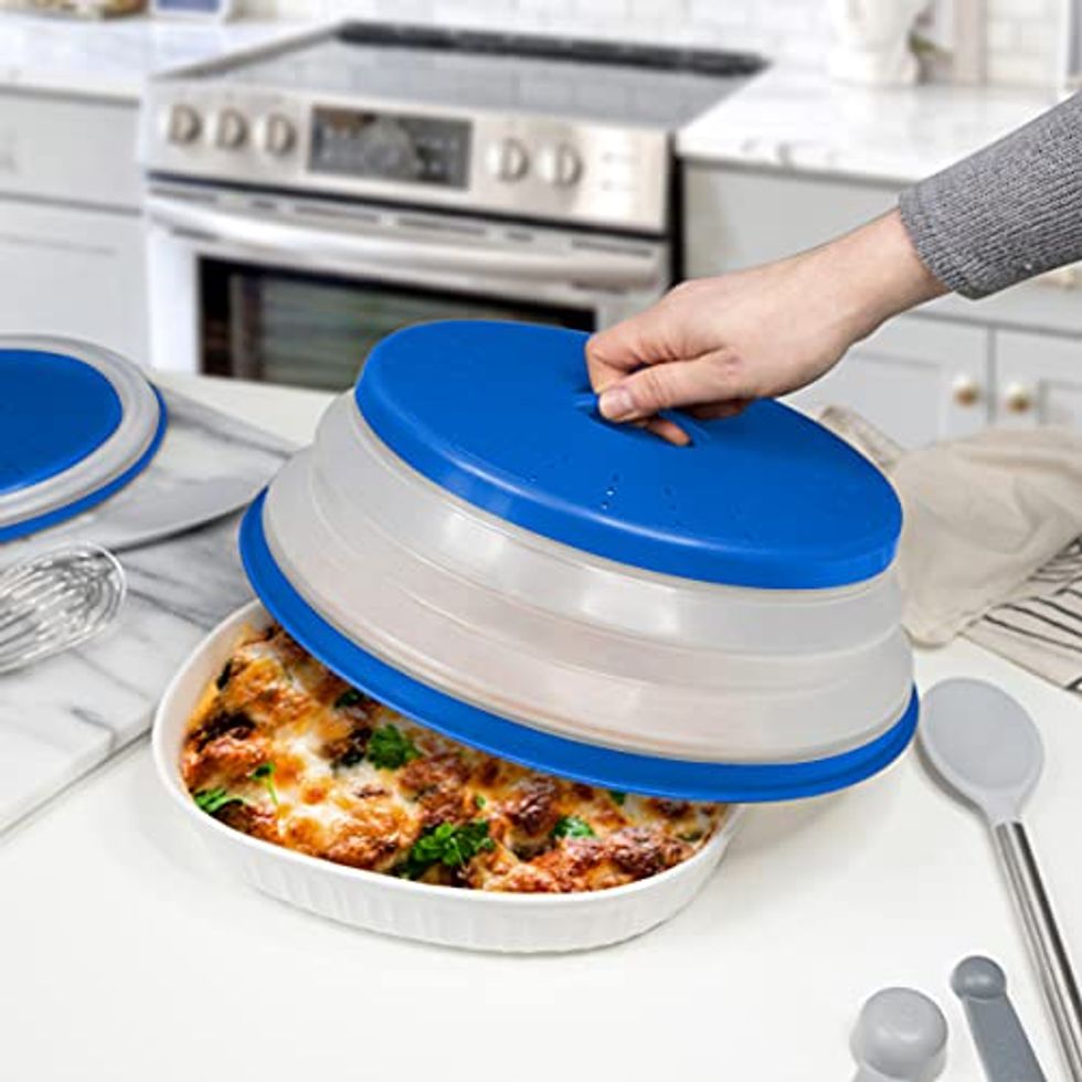 A Collapsible Microwave Food Cover That Doubles as a Colander