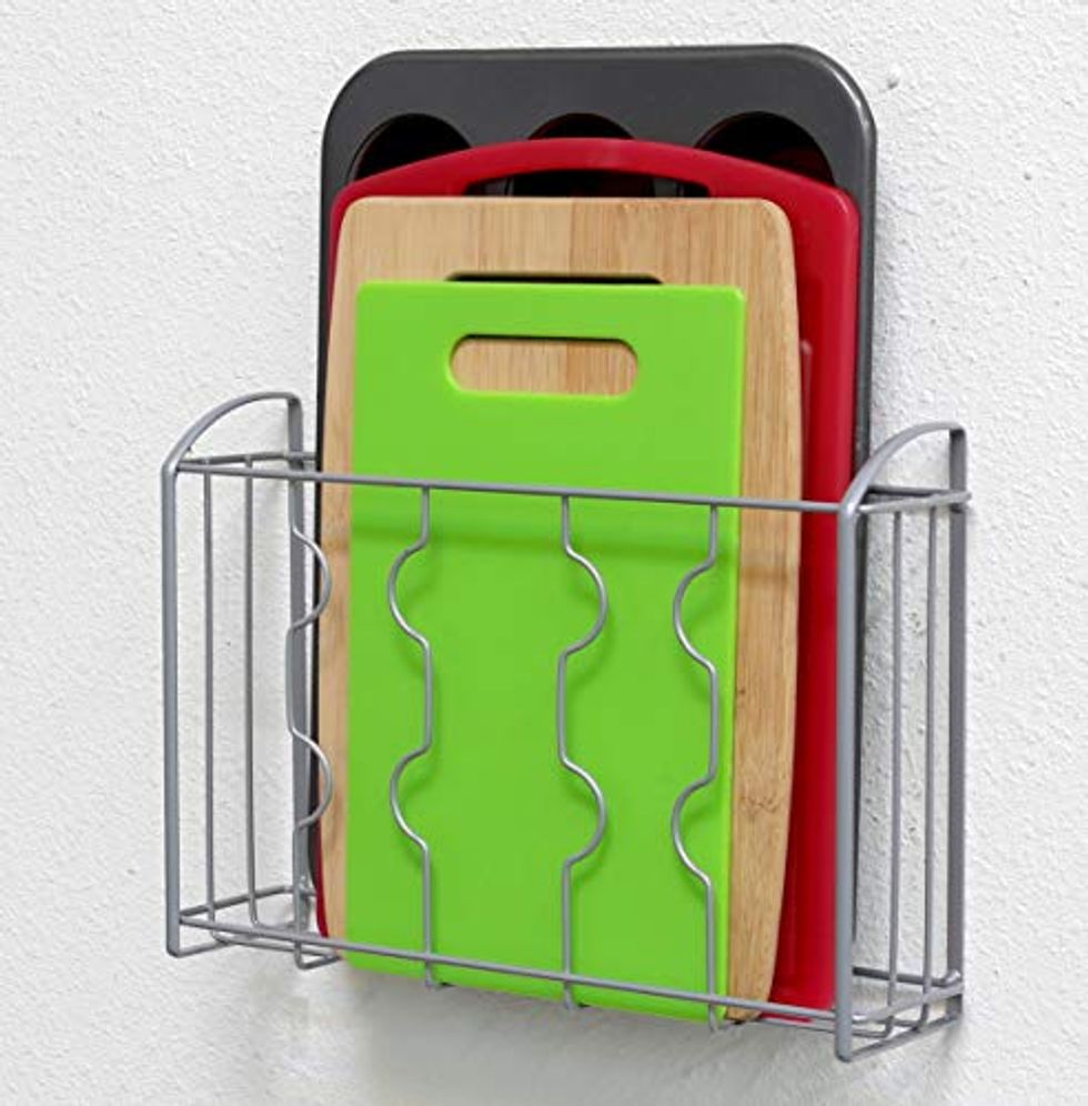 Make use of every inch of space with this over-the-cabinet door holder. Rack up your cutting boards, bakeware pans, and food wraps in this sturdy steel organizer. Just be sure to measure your space before purchasing.