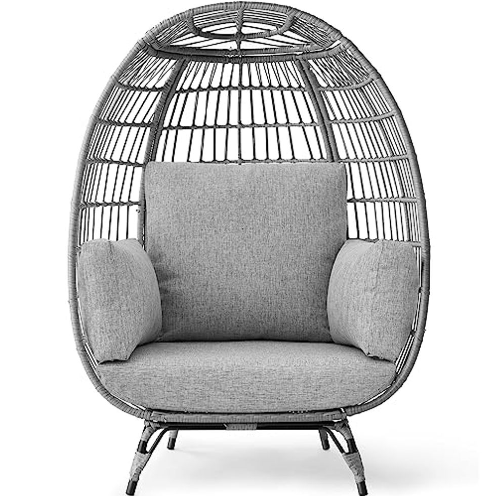 Curl up in this stunning Best Choice Products wicker egg chair, perfect for your living room or outdoor area. Whether you’re diving into a book or binge-watching The Crown: Season 6, this chair, with its four cushy pillows, is ideal for both indoor and outdoor chilling.