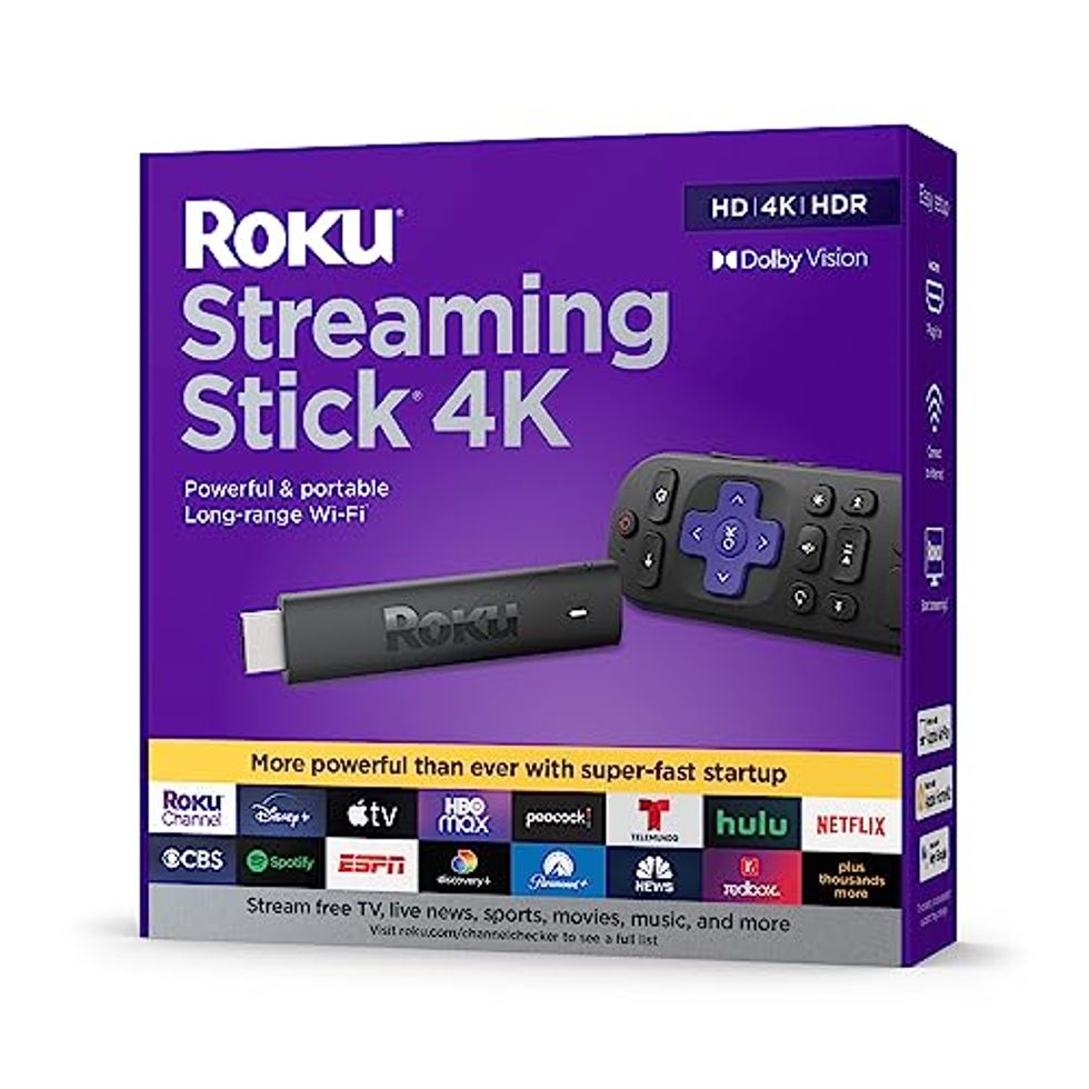 The Roku Streaming Stick is a receiver that hides behind your TV and has a quick startup for a ton of popular apps like Netflix, Hulu, and Prime Video. One remote rules them all – power, volume, and the Roku.