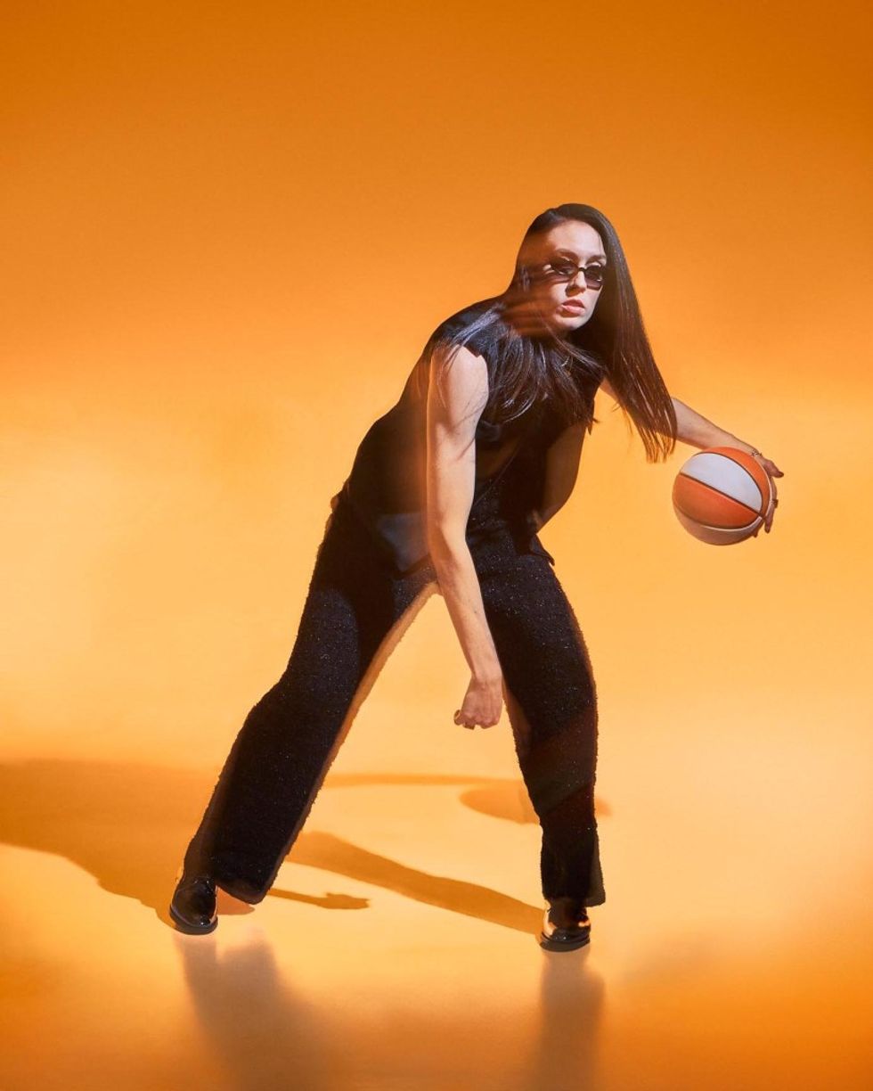 Diana Taurasi: Styling by COURTNEY MAYS AT THE ONLY AGENCY. Makeup by SANDRA GREENE. Jacket and trousers by APC. Sneakers by RICK OWENS.