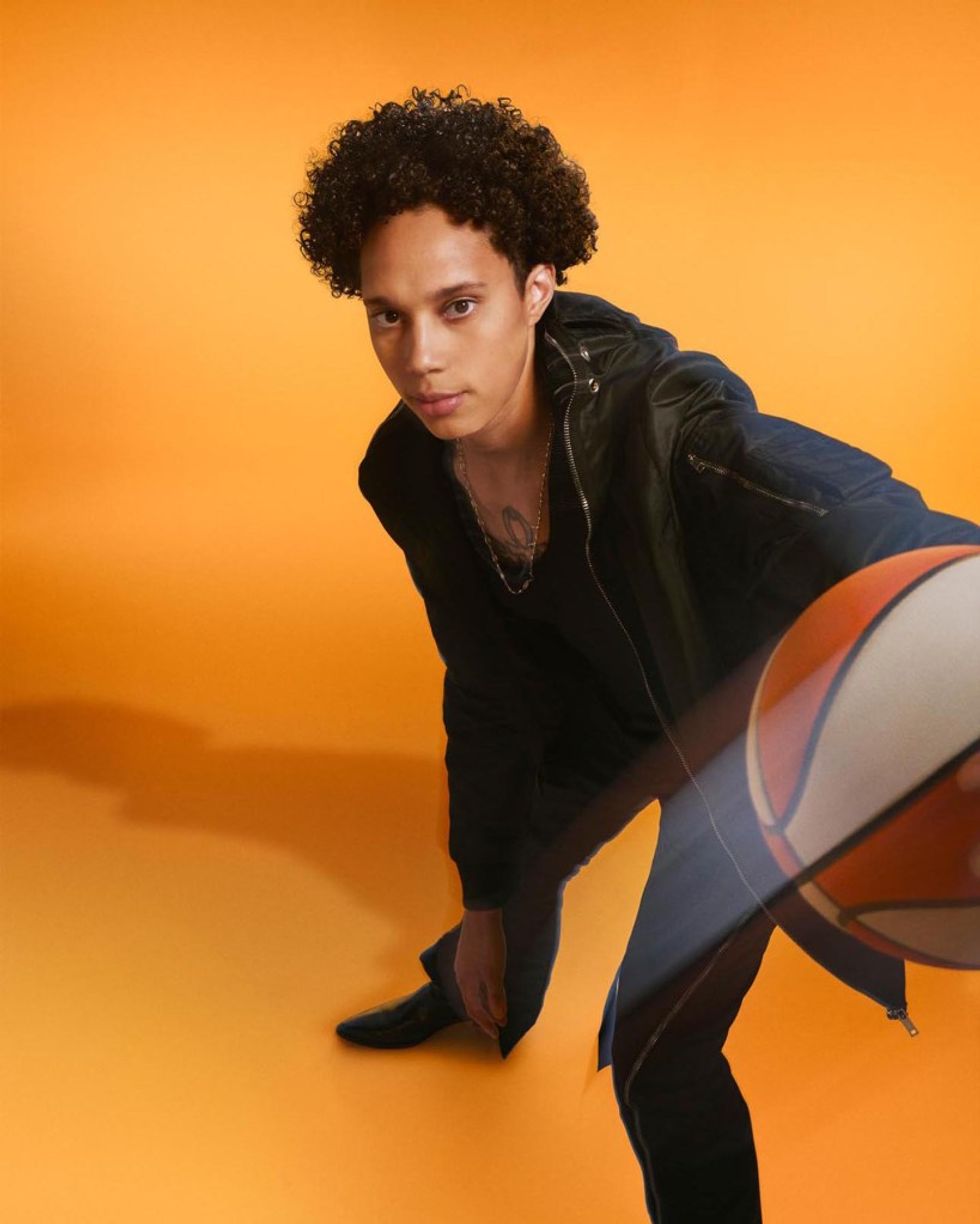 Brittney Griner: Styling by TYRUS DIVINE HOSLEY. Hair by MICHELLE ANDERSON. Makeup by SHAKEIRA DILLARD. Look by RICK OWENS DRKSHDW VIA ONE FIVE ONE (Scottsdale).
