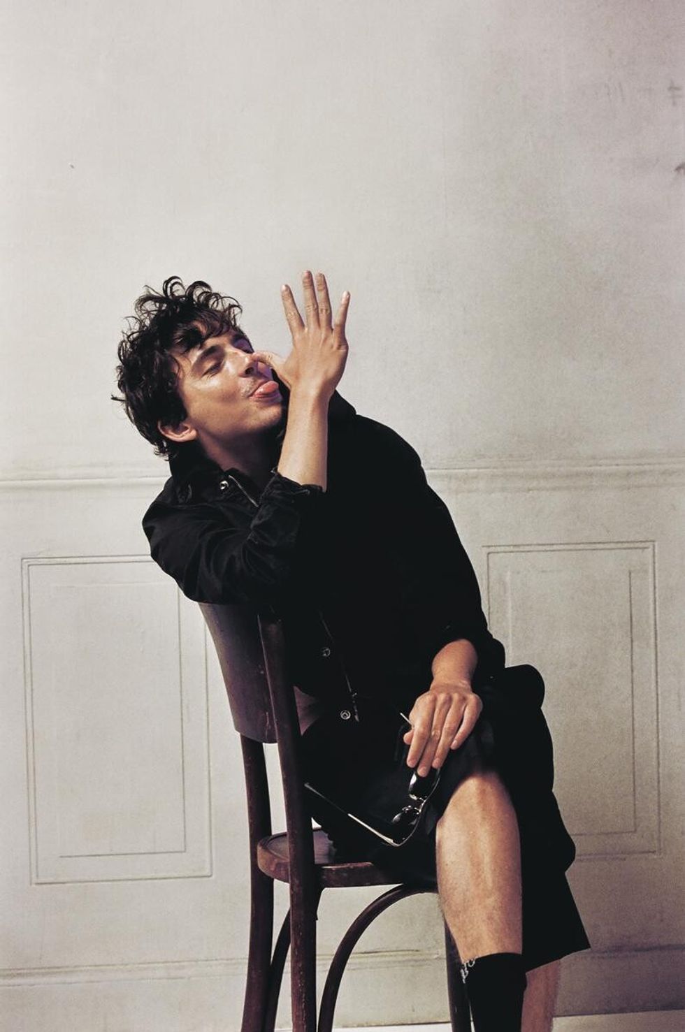 Dylan a craqué peu après les événements dépeints dans le film, enfourchant sa moto pour finir dans un certain isolement à Woodstock, dans l’État de New York. Chalamet reconnaît que son temps d’arrêt pendant la pandémie, durant lequel il a séjourné dans cette même ville du nord de l’État, a eu un effet similaire. C’était «un face-à-face imposé avec moi-même, une occasion de faire le point et de me dire : "Ok, voilà où j’en suis", dit-il. En même temps, on peut se regarder dans ce miroir trop longtemps et créer une ornière qui n’existe pas vraiment.» La célébrité peut amplifier ce danger : «Avec l’attention, ou peu importe, il faut être encore plus prudent.» Il prend une respiration. «Et aussi, il ne faut pas trop se fucking prendre au sérieux. Profitons de la vie, tout simplement.»