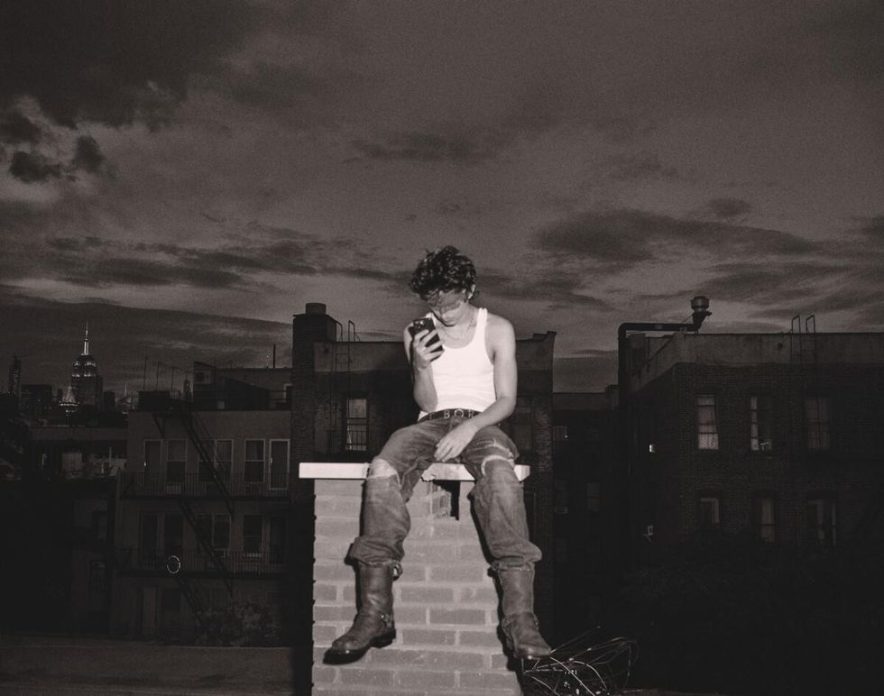Nous nous retrouvons dans le hall du fameux Chelsea Hotel, où Dylan a autrefois habité. Dans A Complete Unknown, une scène digne d’une affiche de film montre Chalamet, en pleine tenue de Dylan en 1965, se tenant devant l’enseigne au néon verticale de l'institution par une soirée brumeuse. L'endroit semble pas mal moins mythique en plein jour alors que Chalamet est sapé comme un étudiant, en short cargo et en t-shirt blanc à manches longues, une chaîne en or discrète autour du cou et une casquette des Yankees enfoncée sur la tête. Le seul rappel de sa célébrité hors du commun est la paire de Nike Field General '82 qu'il a aux pieds, une réédition qu’il a rendue virale à lui seul lorsqu’il les a portées avant leur lancement lors d'un match de la NBA l'an dernier.