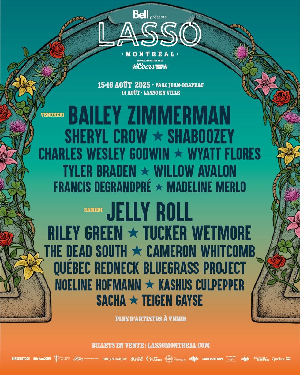 De grosses pointures se produiront au prochain festival Lasso. L’événement organisé par le promoteur evenko a dévoilé mercredi matin sa programmation complète. En plus des têtes d’affiche déjà annoncées – Bailey Zimmerman et Jelly Roll – nul autre que Sheryl Crow, Riley Green, Shaboozey et Tucker Wetmore seront de la partie.