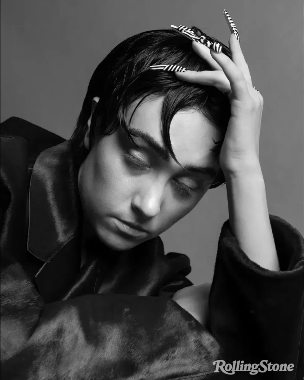 Propulsée au sommet cet été, elle apprend à exister en tant que personne queer sans avoir à en parler tout le temps. «Tu n’as pas nécessairement besoin d’être ouvertement visible», dit-elle. «Tu peux célébrer discrètement si tu veux. C’est genre, j’adore être gaie. J’ai juste pas envie d’en parler chaque seconde de chaque jour.» Elle fait maintenant partie d'un groupe d'artistes lesbiennes, queer et non-binaires qui dominent la pop : Billie Eilish, Reneé Rapp, Victoria Monét, Muna et boygenius, entre autres. «C’est tellement cool que les gens aient commencé à prendre les artistes queer au sérieux au-delà de leur identité queer», affirme-t-elle.