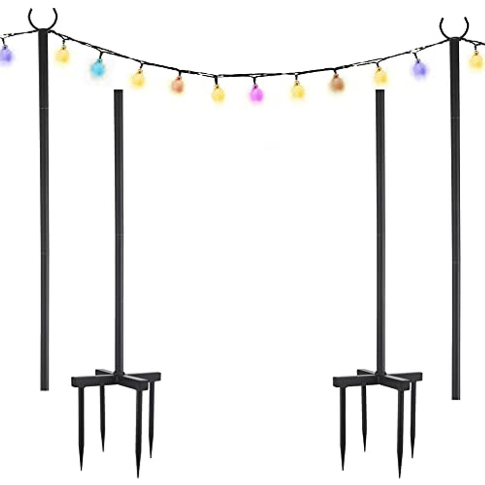 Instead of blasting a flood light into everyone’s faces, use these string light poles and hang your lighting above your head for the perfect ambiance. The base firmly presses into the ground, and you can adjust the height of each pole up to nearly ten feet.