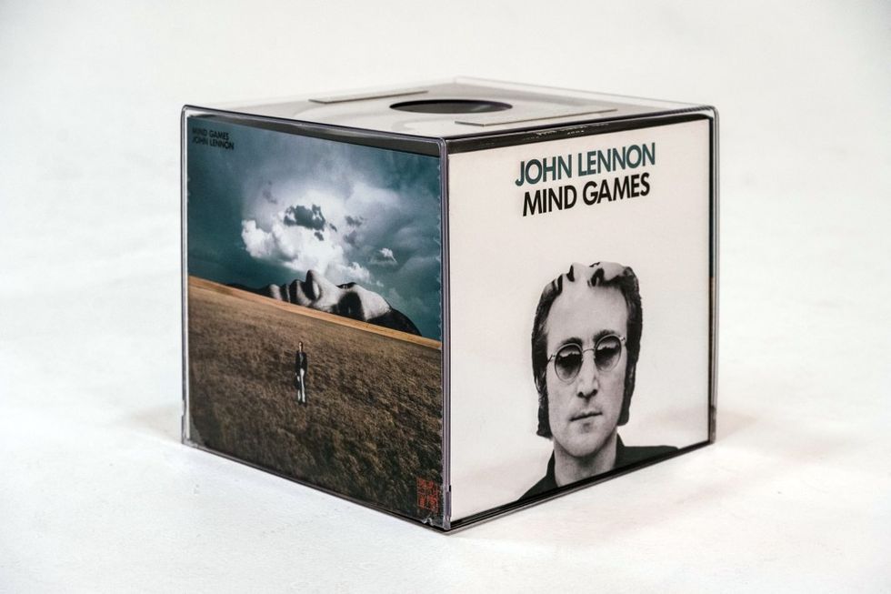Mind Games was always more than “just an album” and a thought-provoking, pricy new super deluxe box set reissue, produced by Sean Ono Lennon, makes the case that Mind Games has always been high art. The special edition takes the more widely available “Ultimate Collection” of Mind Games remixes and supersizes it into a 13-inch cube that fits inside a replica of Yoko Ono’s Danger Box. Sean Ono Lennon has also complemented the album with maps, games, puzzles, I Ching coins, a replica of Lennon’s circular You Are Here canvas, and other novelties (all detailed below). But the heart of the collection is Lennon’s album, presented several ways.