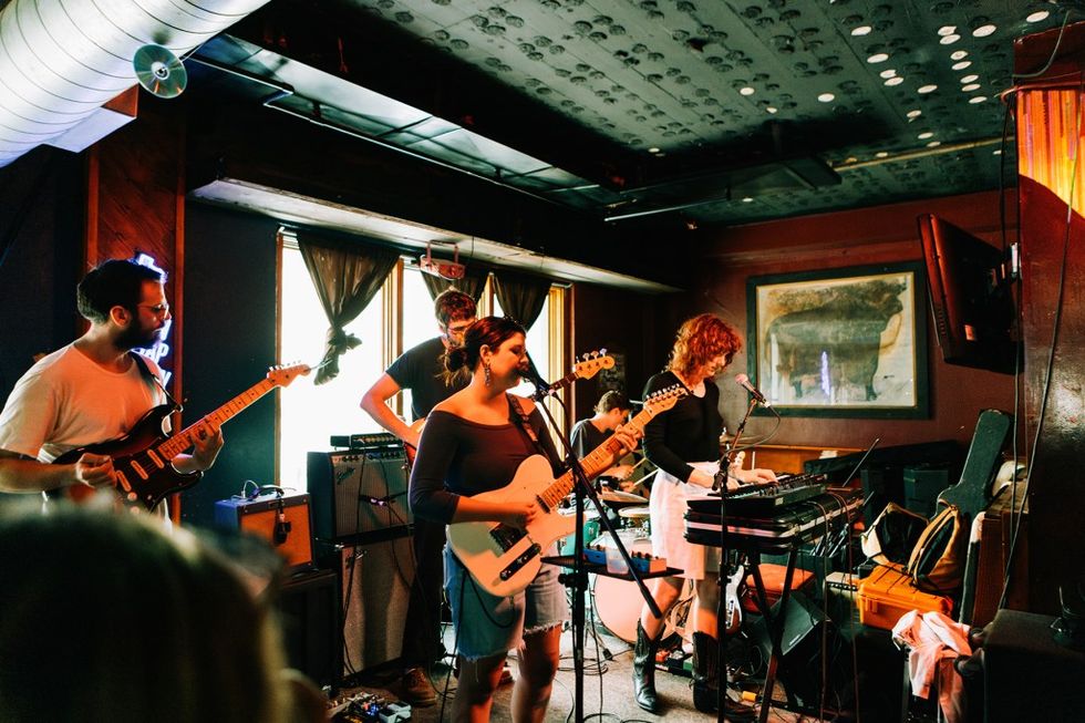 Eliza McLamb already had fans present in the sweaty Shiner’s Saloon, singing every word to her songs during her set. But she gained even more in real time, with listeners’ eyes widening whenever the Los Angeles singer-songwriter uttered an extremely relatable line — which was often. When she sang “I feel like a modern woman/I get up late, I’m always saying/’Man, I gotta hit the DMV,’” a circle of friends all looked at each other and nodded in agreement. In that same verse of “Modern Woman,” when she confessed “2 p.m. is a wormhole into buying clothes on Instagram/And standing in front of my fridge eating deli ham,” those same friends giggled. McLamb first came onto the scene in 2020, when her song “Porn Star Tits” went viral on TikTok (she is also co-host of the Binchtopia podcast). In January, she dropped her excellent debut Going Through It, produced by indie legend Sarah Tudzin of Illuminati Hotties. Her set included tracks from that record, as well as previous gems like “Salt Circle” and “Lena Grove.” “I love Texas, I’m having a fantastic time,” McLamb said. “Even though Greg Abbott told me never to return.” —A.M.