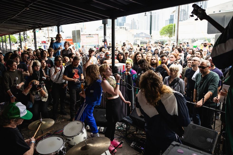 Los Angeles’ Rocket were one of the buzzier bands at SXSW this year, coming up frequently in conversations around town as one you shouldn’t miss. If you made it to Cheer Up Charlie’s in time for their performance at a Stereogum party at 10:30 p.m., you found out why. Rocket make soaring, anthemic alt-rock with a classic feel, picking up a torch from veteran acts like Dinosaur Jr. (who played SXSW earlier in the week). Lead singer and bassist Alithea Tuttle paired a deadpan look with big, searching vocals as two bandmates on guitar and a ferocious drummer pounded away. The band, who have been together since high school, played harder and faster than on their 2023 debut EP, Versions of You. They felt like that archetypal SXSW story, a band that’s ready to take it to the next level. —S.V.L.