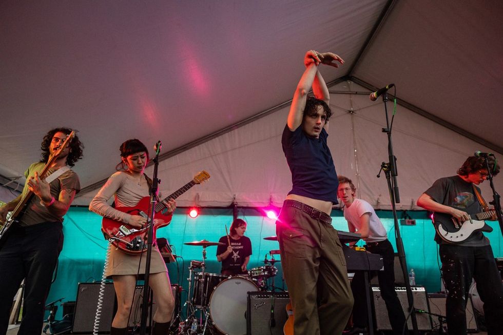 Nina Grollman, the pop mind behind Softee, arrived onstage at Elysium for the City Slang label showcase in a Working Girl-esque blazer. (This is Rolling Stone’s second time referencing the 1988 Mike Nichols film in our SXSW 2024 coverage. We stand by it.) Accompanied by a guitarist, a drummer, a laptop, and one hell of a voice, Grollman performed tracks from last year’s Natural, her excellent “cash cow” single “Oh No,” and a handful of new material. Above all, the Juilliard-trained Broadway actor delivered queer psych-pop magic at a time when SXSW needs it most. “We’re really happy to be here,” she told the crowd. “Obviously this festival, we all know at this point — I mean, I hope the people in this room at least know — how fucking problematic and weird it is as artists. Like, what are we supposed to do? It’s really fucking crazy. And we just want to say we do not support the war-mongering and the U.S. military funding of this festival. But we are here to raise money for abortions and abortion access in Texas, and we are all very passionate about that cause, and that’s why we’re here tonight. Because we really believe this is amplifying that.” This is the second year in a row that Softee has made our Best of SXSW list — don’t sleep on her music. —A.M.