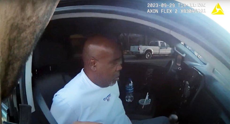 “I ain’t worried about it,” Davis mumbled, and the officer replied, “That’s what court’s for, right?”