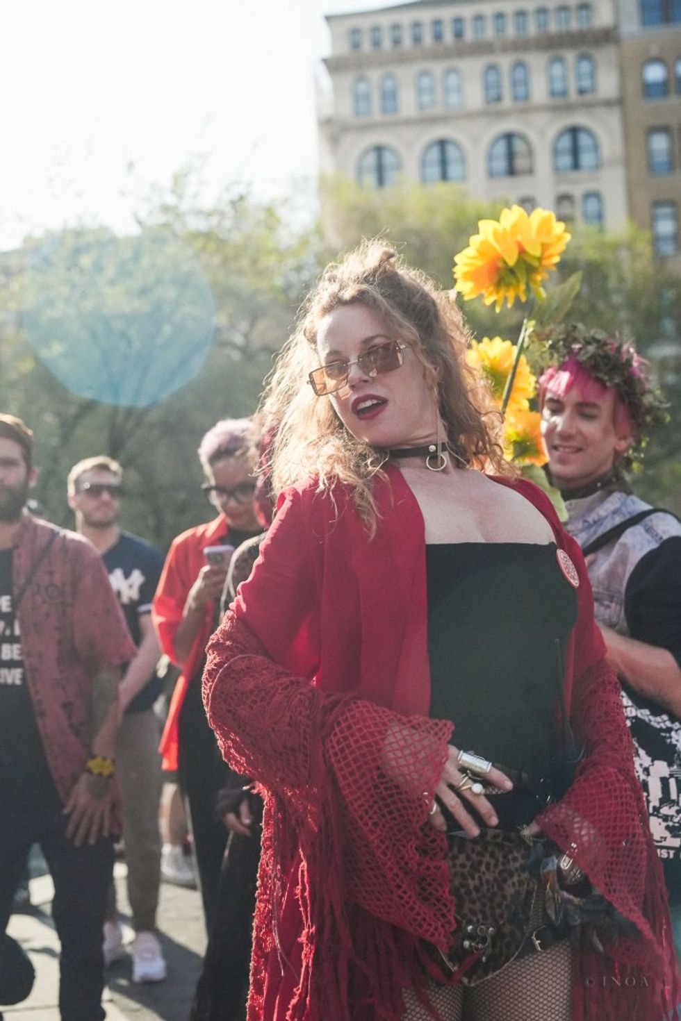 Throughout the afternoon, DJs spun, pretty people danced, and an activist from Ecuador pleaded for his motherland, his feather headband outlined against the Whole Foods behind him. Chris Smalls was supposed to be there but wasn’t; another organizer from the Amazon Labor Union sang original reggae songs instead. Curious onlookers joined. Disgruntled chess players left. Environmental lawyer Steven Donziger, freshly free from house arrest after his battle royale with Chevron over oil drilling in Ecuador, gave an impassioned speech about how Biden won’t save us, then hurried off to a Marianne Williamson fundraiser.