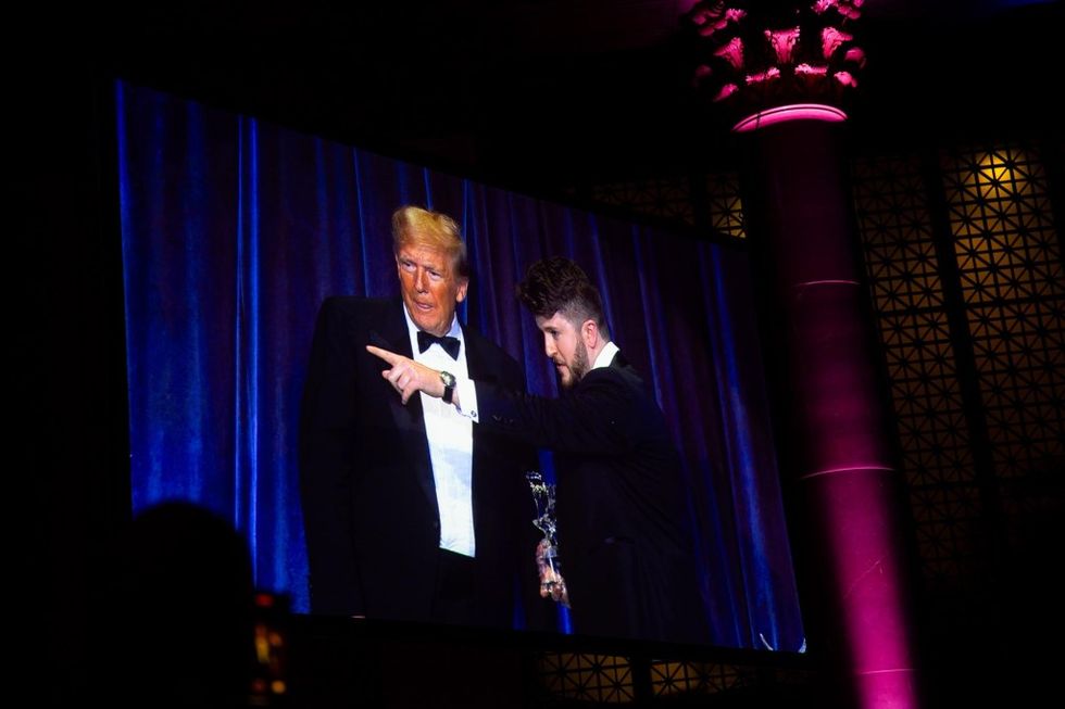 I’m in the corner with the rest of the press, crammed up against a riser where photographers grumble because they cannot actually see shit and Donald Trump is about to take the stage to make what the program calls his “grand entrance” at the 111th annual gala for the New York Young Republicans Club, a $699-a-plate event co-hosted by a Hungarian far-right think tank. It feels like MAGA prom — men in black tie, women in sequin dresses.