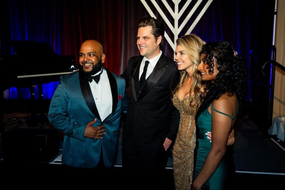 Vish Burra poses with Florida Rep. Matt Gaetz, his wife, Ginger, and another gala attendee (from left). Burra worked for Gaetz as he was investigated.