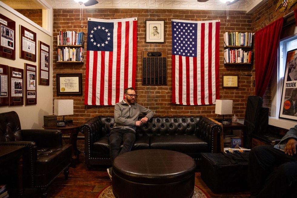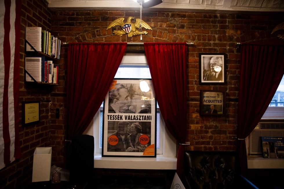 THE WALLS OF THE NYYRC clubhouse are decorated with a kitschy array of political memorabilia. There’s a framed photo of Nixon, a sign that says “TRUMP” made of shotgun shells, along with crosses and American flags. On one wall is an installation of plaques — laminated news articles set into heavy wood frames. The New York Times, the New York Post, The New Yorker, New York Magazine — all clipped and mounted, like big-game trophies in a hunting lodge. And these aren’t — with the exception of the Post — puff pieces. The Times and New York have dishy takedowns of past gala events; The New Yorker’s is a snarky little dalliance about the “martinis with Roger Stone” event. When I start drafting this story in my head, fishing for adroit ways of capturing the young far-right’s views, I can’t stop thinking about the plaques.