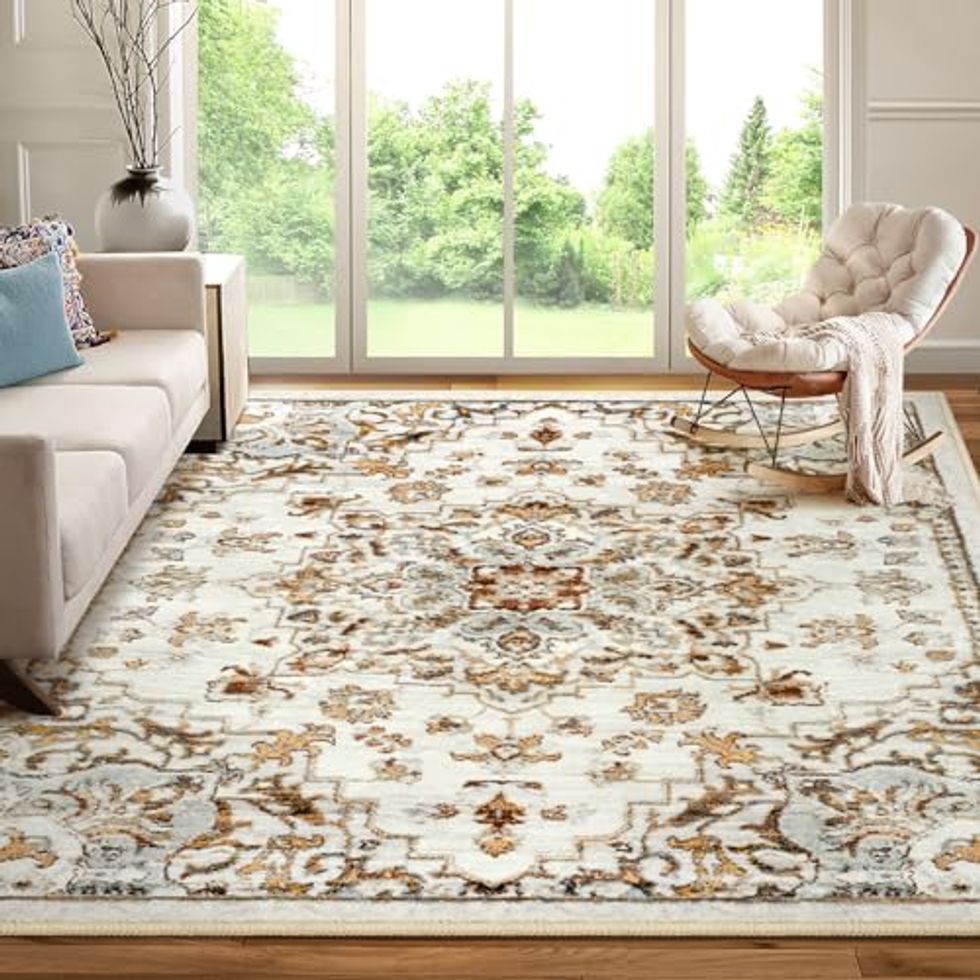 This rug ‘s ornate pattern is eye-catching, and it comes in an array of sizes and shades. Best of all, it’s washable, so it can withstand the mayhem of a busy household (or ball).