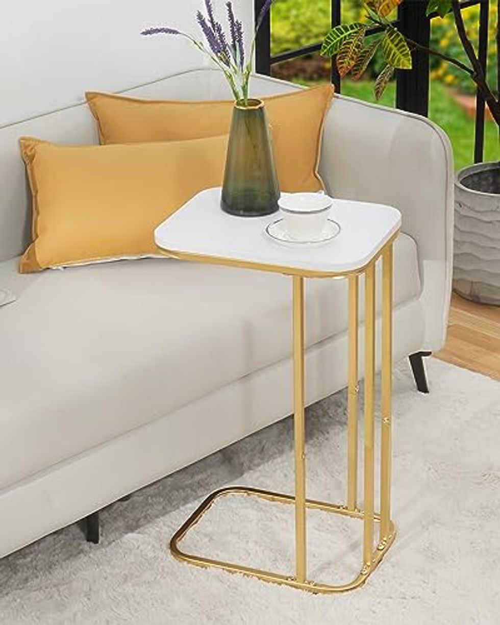 If you’re short on room in your home, this table ‘s c-shaped design can create the perfect dining spot for meals in front of the TV. The classic gold frame has a regal elegance, and customers say it’s easy to fit together.