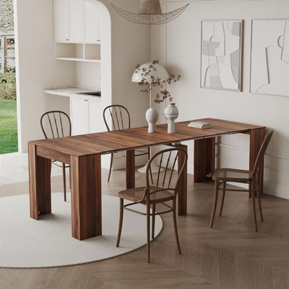 This dining table is perfect for those occasions when you’re entertaining guests, as it can seat up to 12. You can fold it down to a small sideboard and keep it against the wall when it’s not in use.