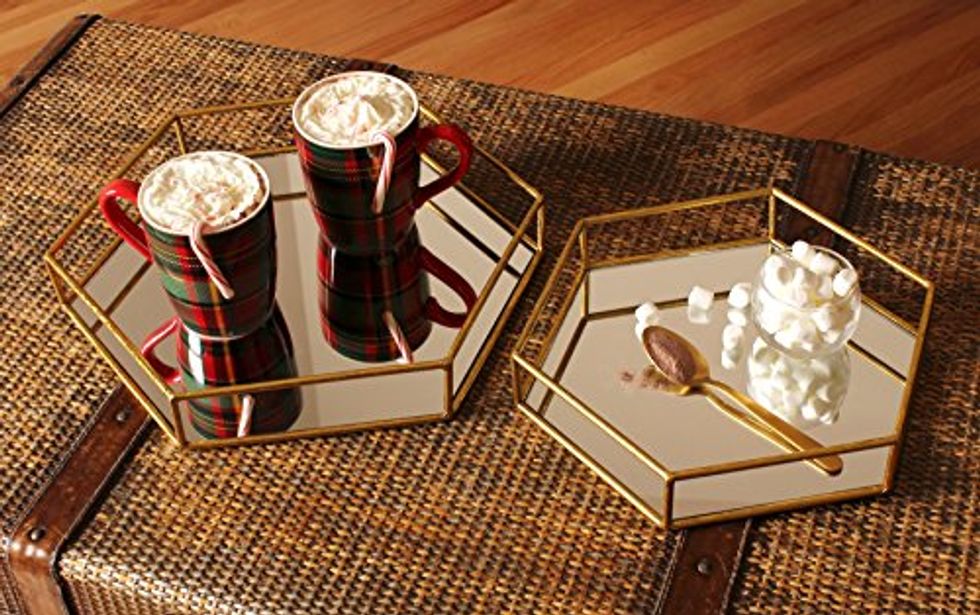 These gold mirrored trays look beautiful and provide a great place for valuables. The hexagonal edges are designed to nestle together, and customers say the quality is outstanding.