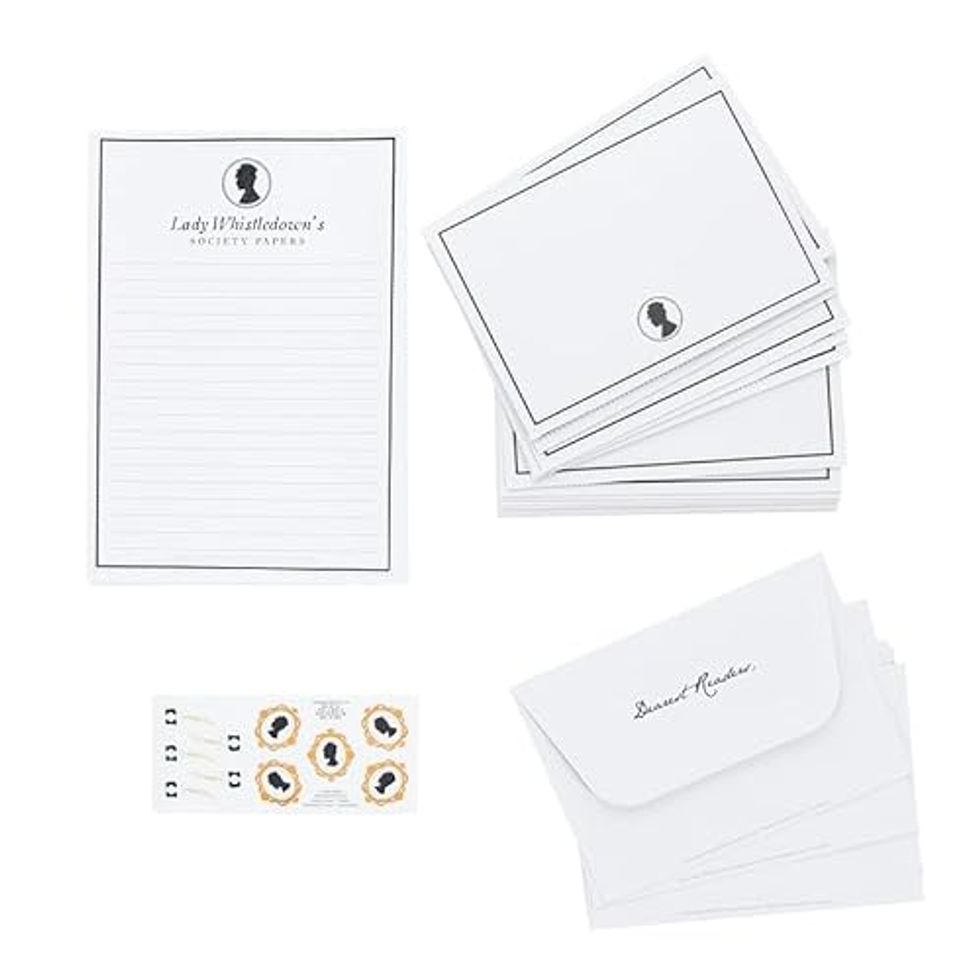 These 20 sheets of Lady Whistledown Society Papers come with envelopes and gold foil stamps. They make great decor for your coffee table and are perfect for penning a letter to a loved one.