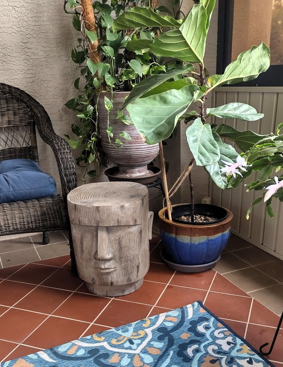 Take it back in time with this Easter Island statue that can be used as a table or stool. This furniture piece is meant to resemble the iconic Moai statues of Easter Island, adding a unique flair to your living space. Elevate your outdoor decor with this unique blend of history and functionality.
