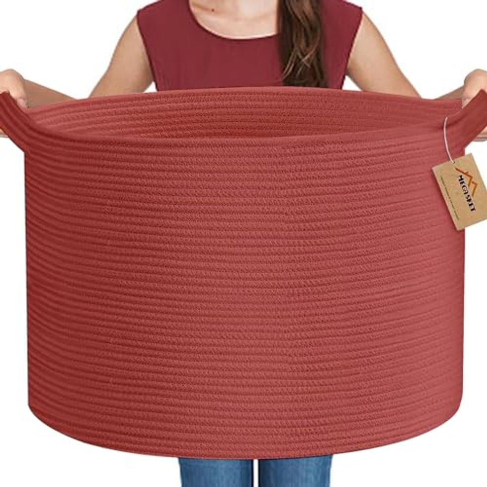 This large woven basket has a contemporary appeal and comes in a good range of colors. The sturdy handles make it easy to transport through the house, and the large size is ideal for bigger items, including toys, blankets, or laundry.