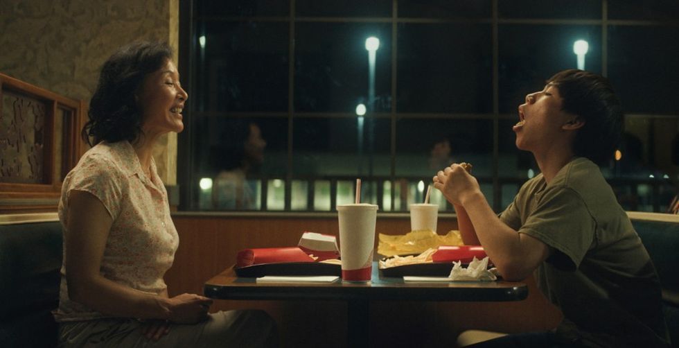 If there is one therapy-session-already-in-progress aspect to Dìdi — one area where the auto-fiction sympathy gives way to real empathy — it’s regarding Chris’s long-suffering mom. Wang may not write off the youngster’s indiscretions as “boys will be boys” shenanigans, yet he’s able to see how Chungsing struggled and fought and tried to express herself through paintings that went largely unappreciated. Chris is naturally embarrassed by her, lashes out at her, piles on when Nai Nai or his older sister rages against her at the dinner table. The kid doesn’t quite see what she’s going through. The adult behind the camera can see it now, with the benefit of experience and hindsight, and the movie almost feels like a belated apology. It makes everything that much richer.