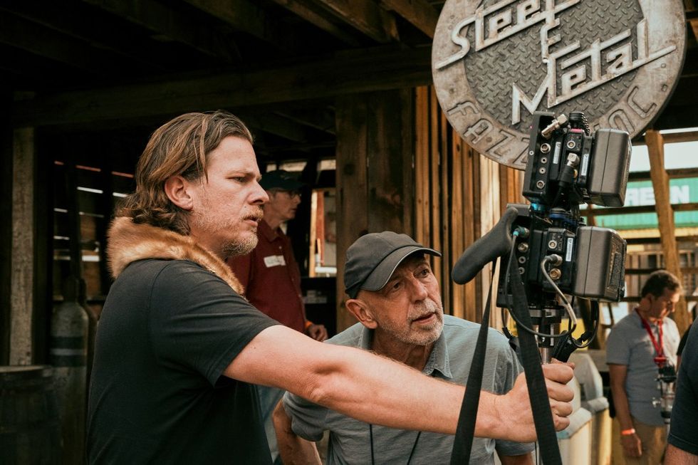 “I’ve spent my fair share walking down the main streets of western sets, but this was something entirely different,” he says. “It was a retro futuristic cowboy punk Dodge City filled alive with 150 extras that looked like they walked off the set of Mad Max. It had a gat-damn nose of an airplane in it! It was electric.”