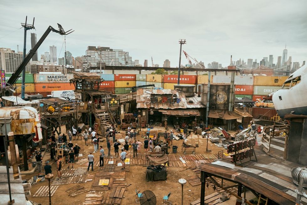 It’s a frigid February day on the Brooklyn waterfront, and the world is ending. A dusting of snow powders the makeshift walkway through the rubble stacked high. Underneath, shanties made of scrap flex and creak with each step. Directly ahead, the disembodied nose of a commercial airliner dangles from the roof of a junkyard saloon. All over town, bullet casings pepper the dirt among the ruins of whatever life was once here. This is a place of violence.