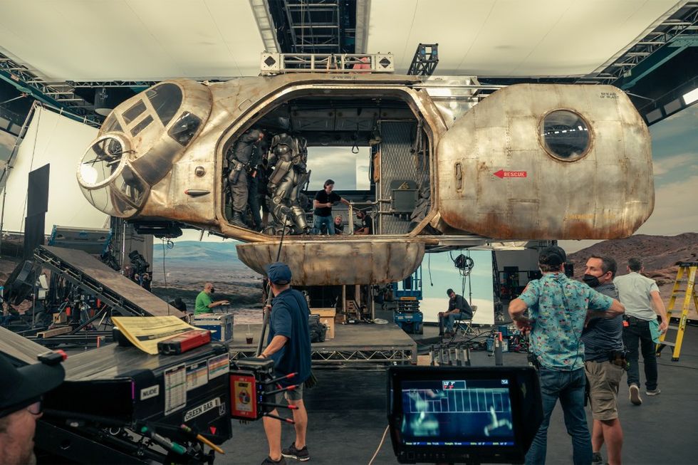 The Volume is a type of soundstage that recently gained popularity for its use on big budget productions like The Mandalorian, wherein the set can be fully surrounded by massive LED panels. Utilizing the Unreal Engine, a graphical development tool typically used to create video games, it acts as a three-dimensional backdrop for filming, but unlike green screens or matte painting, it functions as fully realized space, not just adjusting perspective realistically as you walk by, but providing a sense of “natural” lighting resembling that of on-location shooting.
