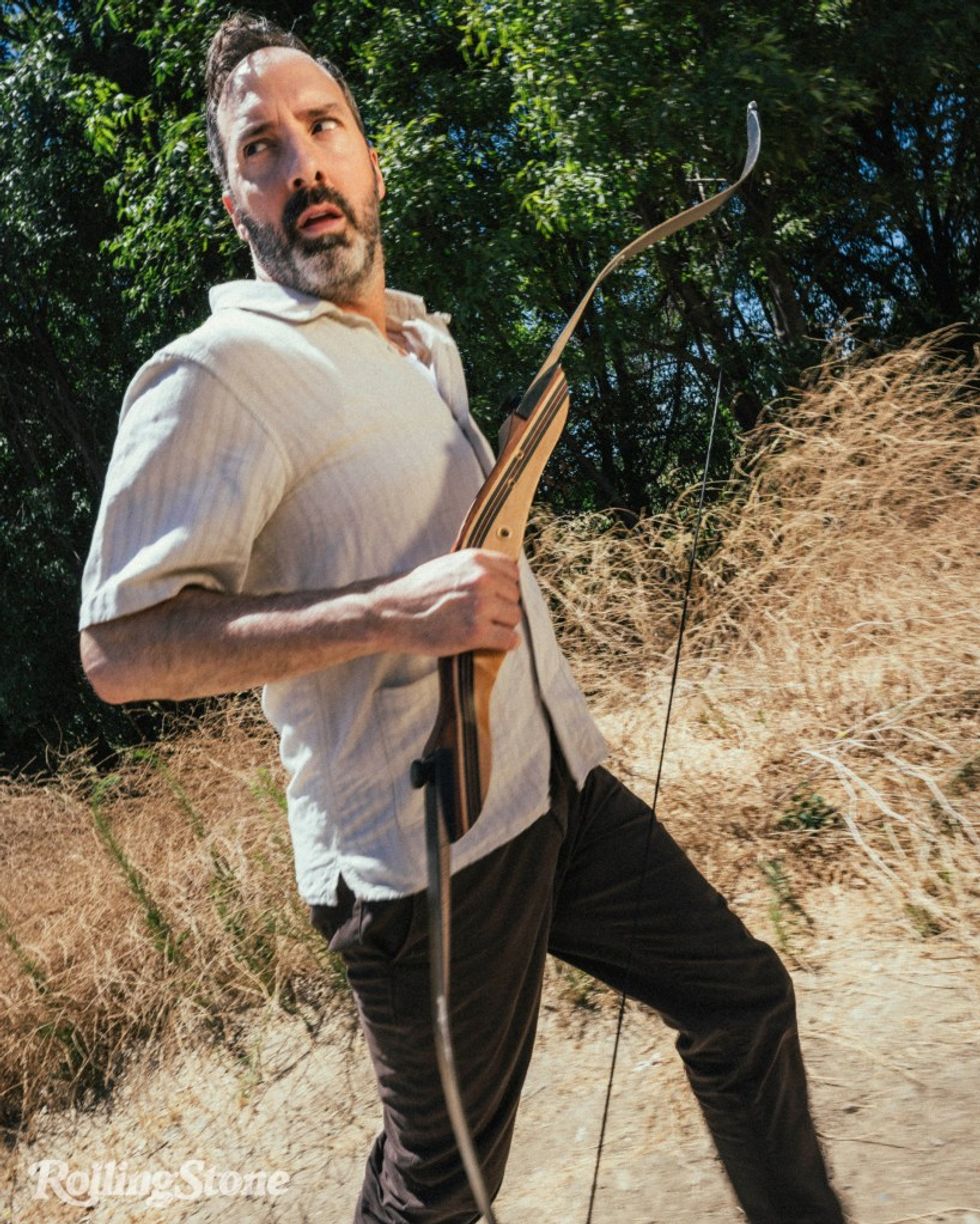 There is a fair amount of arrow shooting over the course of the show’s eight episodes, but Sirisco is always on the wrong end of it. So Hale has never wielded a bow. (His 18-year-old daughter, Loy, did give him some pointers based on her own archery lessons at camp.) Before we begin, Hale pulls a hooded brown robe out of his bag, explaining that he brought it just in case there’s a Robin Hood vibe going on during the post-lesson photo shoot. He wore the robe earlier this year while playing Qui-Gon Jinn in a staged reading of The Phantom Menace. (The reading, which also featured Bobby Moynihan, Larraine Newman, Tawny Newsome, and a bunch of other funny people, is on YouTube and arguably more entertaining than the actual film.)